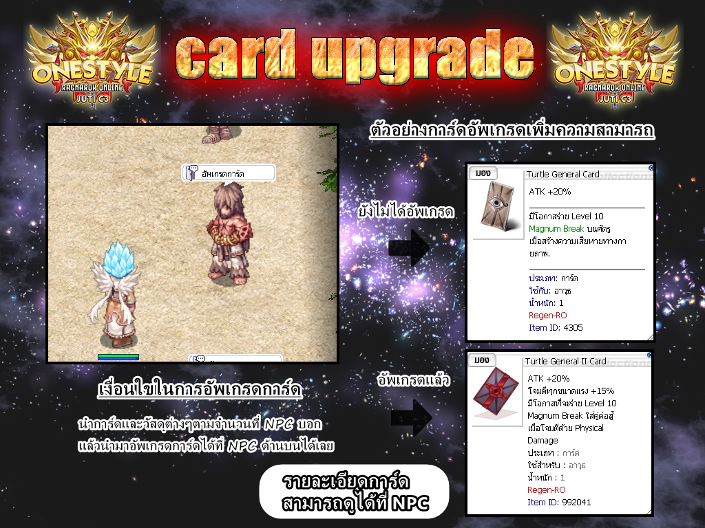 • แค่คลิกดูที่รูปการ์ดที่ต้องการอัพเกรดจะแสดงไอเทมส์ที่ต้องการเพื่อมาอัพเกรดตามภาพนี้ •
